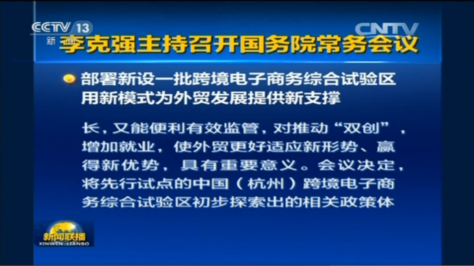 2016年1月6日国务院常务会议推广南通综试区六体系两平台